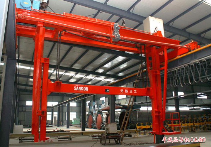 半成品/成品行車+吊具主要用于釜前編組/出釜,釜前編組行車把坯體吊至釜前軌道;成品行車+吊具主要是把坯體從出釜軌道吊至側(cè)板輥道上。