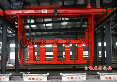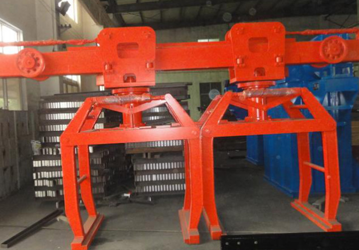 成品行車和夾具主要用于包裝工段,把坯體從側(cè)板輥道吊至合模機上。
