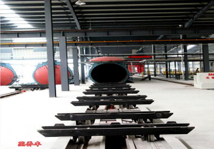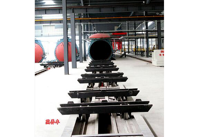 蒸養(yǎng)小車是生產(chǎn)過程中的專用運輸車輛,其裝載著切割后的坯體,進入蒸壓釜護養(yǎng)。護養(yǎng)后,將成品運送至成品場地,成品被吊卸后,蒸養(yǎng)車再次載坯體入釜護養(yǎng)。